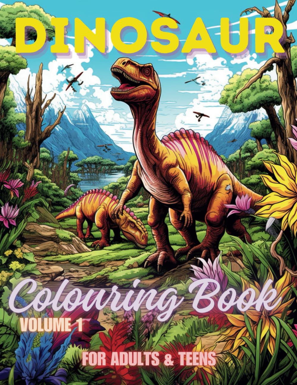 Dinosaur Colouring Book for Adults & Teens. Black and White. 40 Unique Designs. 8.5x11"